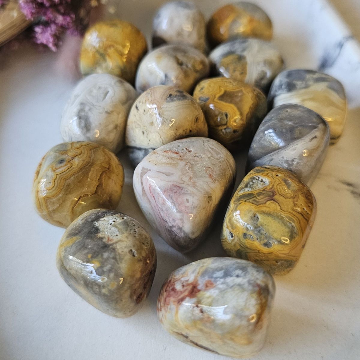 Agate crazy lace : Vertus et propriétés sur le plan psychologique : Soutien émotionnel : Soulage la peur et l’anxiété, apportant sérénité et paix intérieure. Protection : Défend contre les énergies négatives, apportant confiance et courage. Développement personnel : favorise l’acceptation de soi et la vie dans le moment présent, en stimulant la créativité et l’imagination. Spiritualité : Aide à la méditation, libère les émotions négatives et renforce les sentiments positifs tels que la compassion et l’affection. Sur le plan physique : Circulation sanguine : Améliore la circulation, soulage la sensation de jambes lourdes et réduit les varices. Renforce les organes : Favorise le bon fonctionnement du cœur, du pancréas, des reins, de la vésicule biliaire et de la vessie. Relaxation musculaire : Calme les crampes et aide à lutter contre les allergies. Digestion et Peau : Favorise la digestion et soulage les problèmes de peau comme l’eczéma et l’acné. Système immunitaire : Renforce le système immunitaire, apportant ainsi de la vitalité physique. Application : Portez la pierre tout au long de la journée pour bénéficier de ses énergies et de ses bienfaits, tant psychologiques que physiques. Associé au chakra racine et aux signes astrologiques Scorpion, Bélier et Lion.